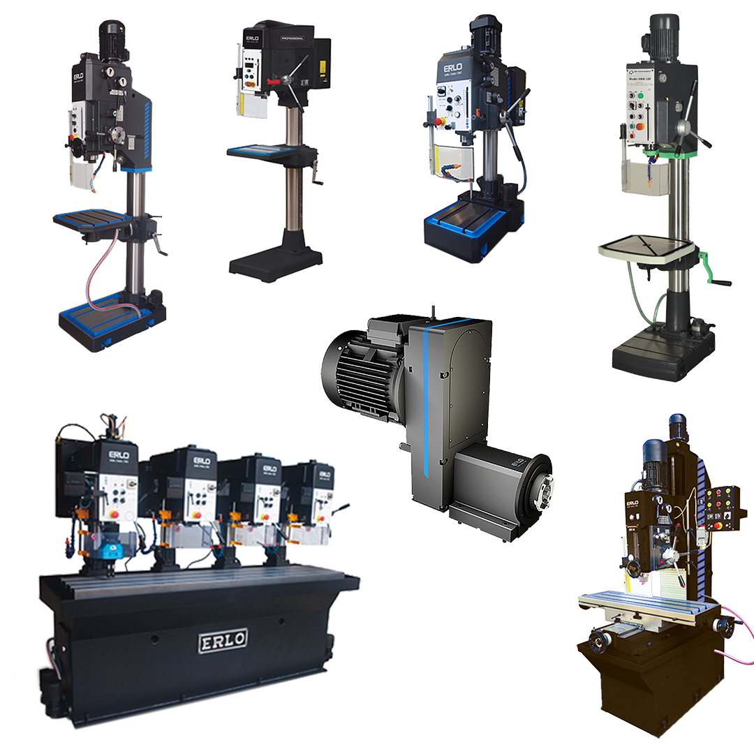 Erlo group is the leading manufacturer of different types of drilling and tapping machines. These drilling machines are equipped with different setups such as fixed bench, prismatic column or round column design and benchtop, while some of these may also come with automatic feed and special cycles to ensure optimal functioning.
