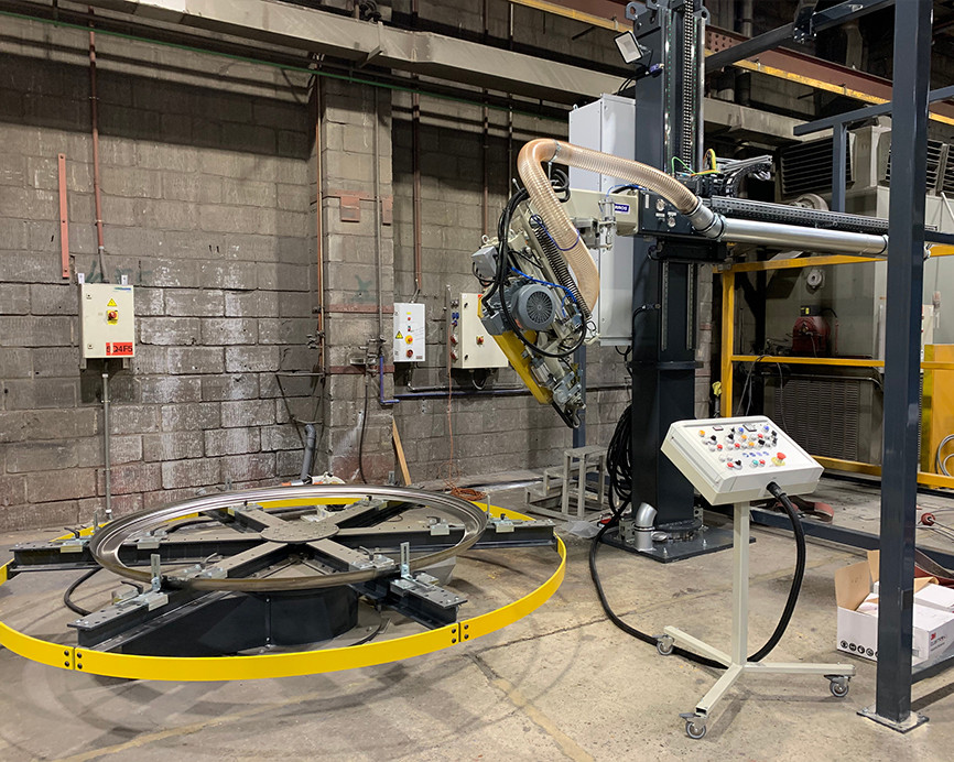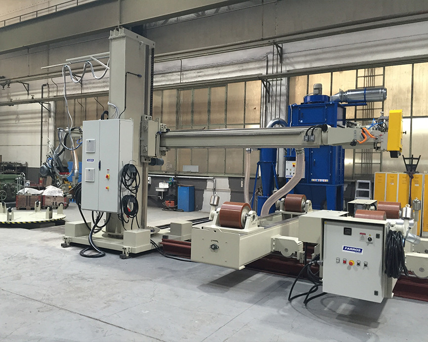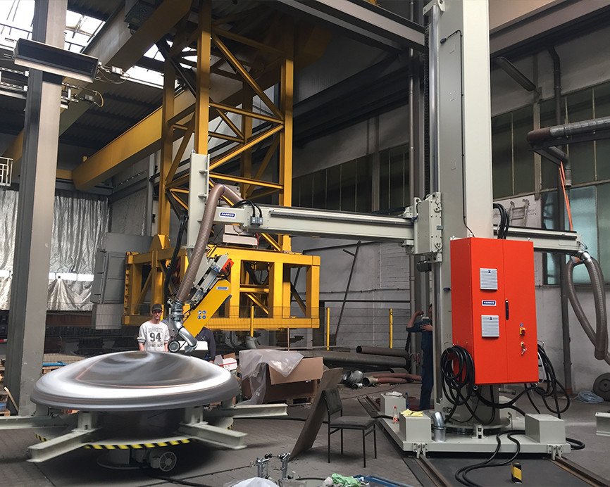 Application: Dish Ends(light), cones, hemisphere, Dimensions: 600-5000mm, 9 Kw , contact wheel : 55-150mm, Belt Dimension: 2250mm.