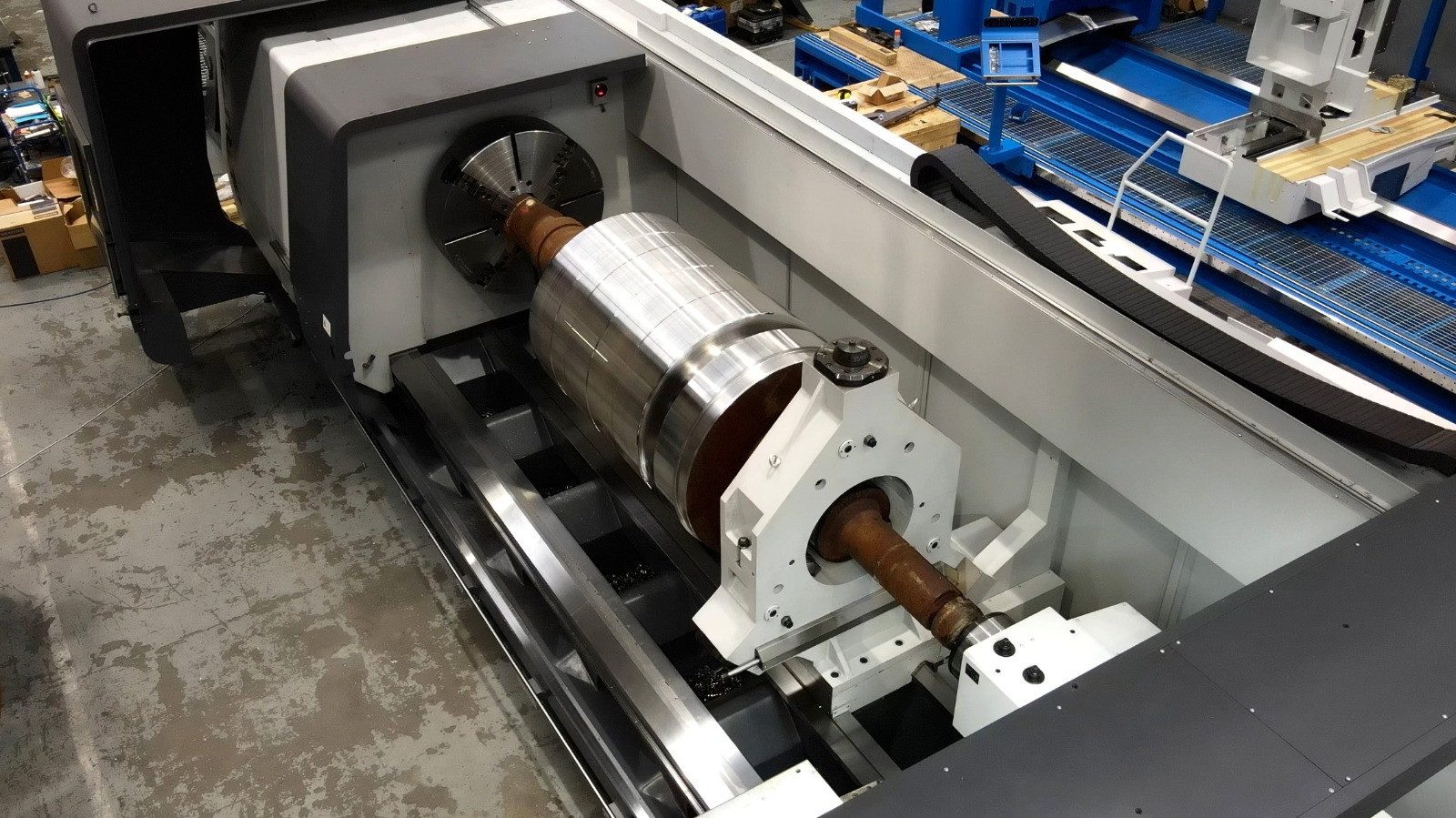 Its maximum diameter is 4,000 mm, and its maximum weight capacity between centers is 200 tons, making it the perfect machine for huge loads. The hagh damping absorbs load variations to improve precision because of its remarkable stiffness. This machine can handle large, complicated items because of its maximum diameter of 3,000 mm and its maximum weight capacity of 90 tons between centers. Additionally, it provides a variety of accessories to improve flexibility and efficiency for a variety of machining applications, such as automatic head and tool changes, specialized heads (such as internal, angular, and grinding), a two-blade column with central milling, and multiple steady rests.