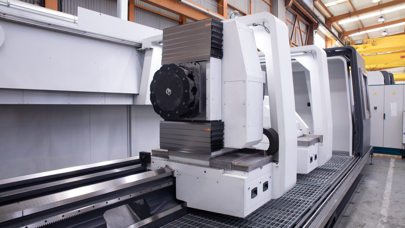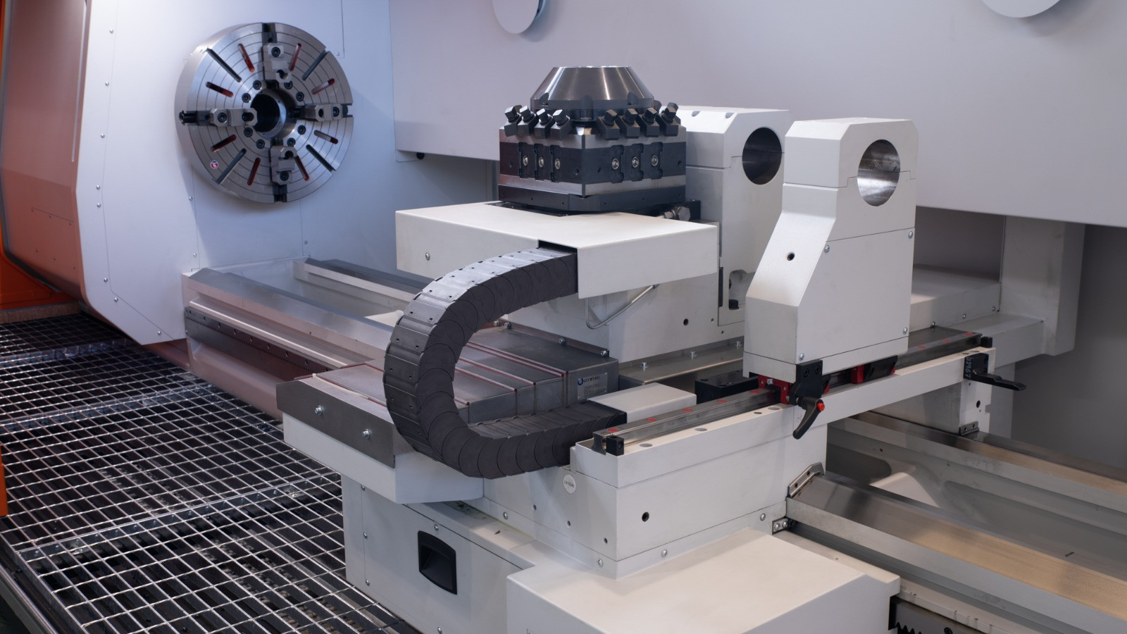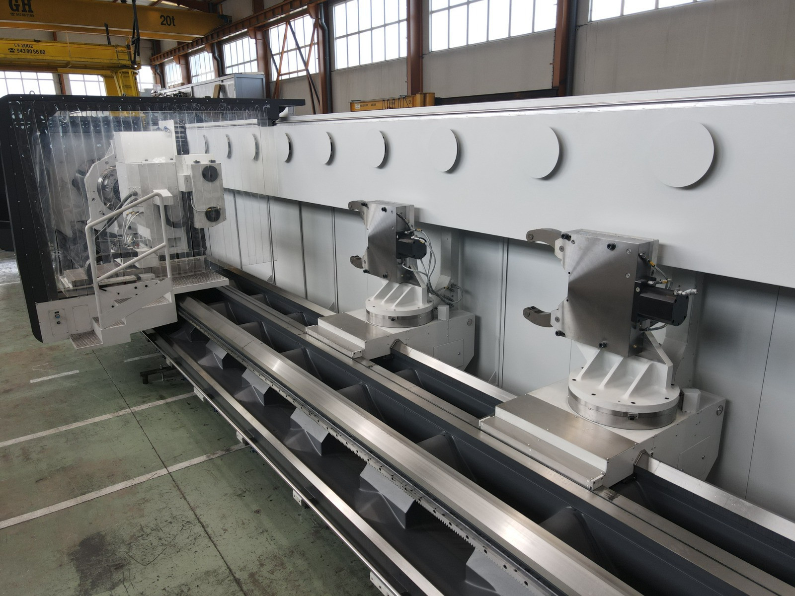 Using pump-per-pocket hydrostatic technology, this machine has a hydrostatic guiding system for both longitudinal and transverse capabilities, ensuring outstanding damping and precision for nearly all heavy-duty applications. With a maximum diameter of 3,000 mm and a weight capacity of up to 90 tons between centers, this machine is designed to handle large, complex pieces. It also offers a range of attachments, including automatic head and tool changers, specialist heads (such as internal, angular, and grinding), a two-blade column with central milling, and several steady rests to enhance flexibility and efficiency for a range of machining applications.