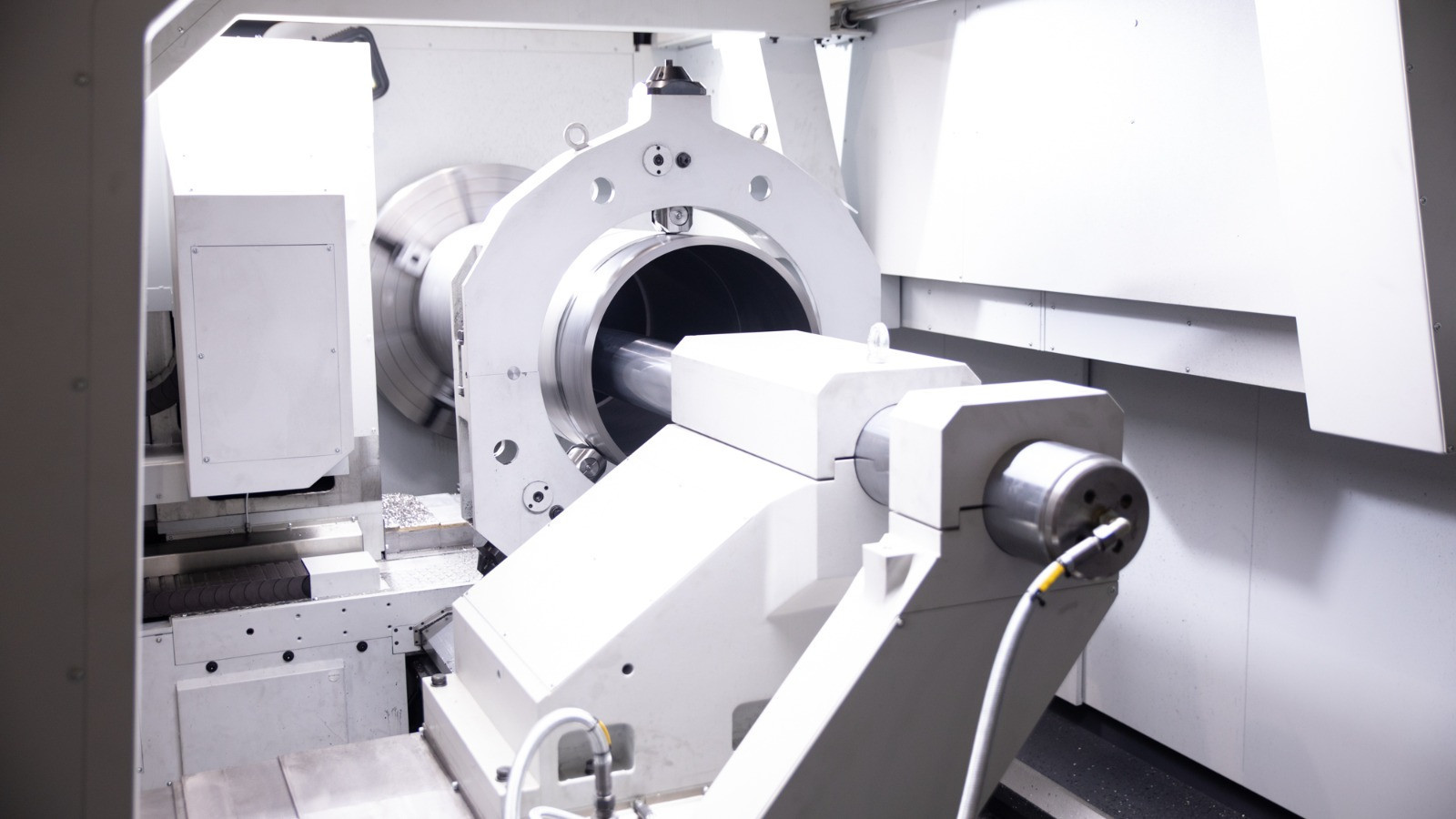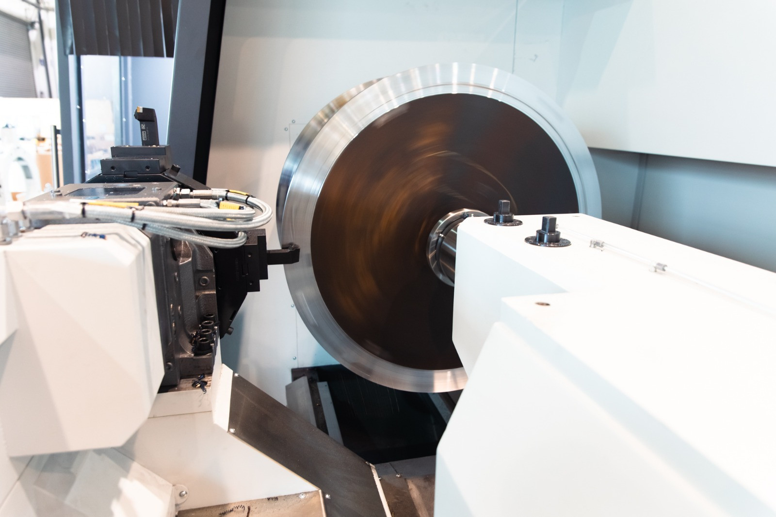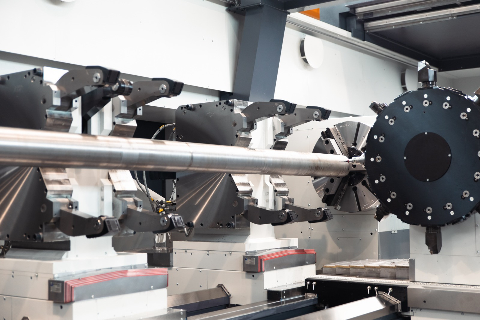 Using pump-per-pocket hydrostatic technology, this machine has a hydrostatic guiding system for both longitudinal and transverse capabilities, ensuring outstanding damping and precision for nearly all heavy-duty applications. With a maximum diameter of 3,000 mm and a weight capacity of up to 90 tons between centers, this machine is designed to handle large, complex pieces. It also offers a range of attachments, including automatic head and tool changers, specialist heads (such as internal, angular, and grinding), a two-blade column with central milling, and several steady rests to enhance flexibility and efficiency for a range of machining applications.