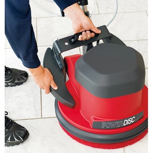 This machine is designed with a circular base powered by a motor and a rotating disc or pad which is attached underneath it. When activated, the rotating disc will spin at a high speed which renders the machine to effectively scrub and polish the floor surfaces.