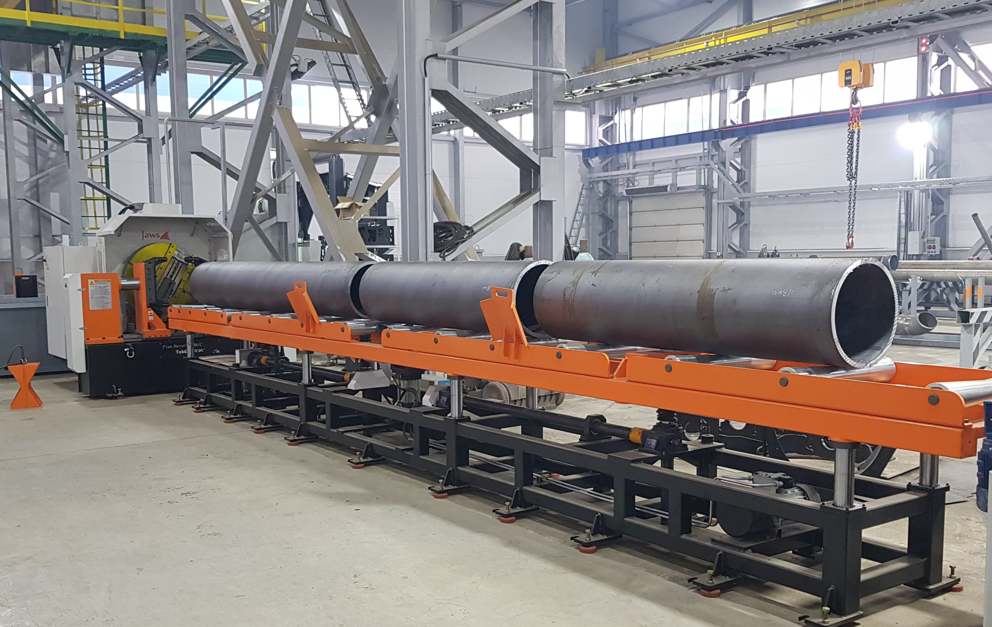 There are many shops, depending on which equipment is used that requires even a day for a pipe of big diameters to achieve the required bevel quality. These jobs could even take up to four hours in order to set up and machine the pipe end. With our Tube Series pipe bevelers, the beveling time can be reduced drastically to 15-30 minutes including the initial setup. Here the pipe is not spinned by the machine, but on the other side clamps and centers the job piece when a facing head would spin and reach the job piece when it is inside.