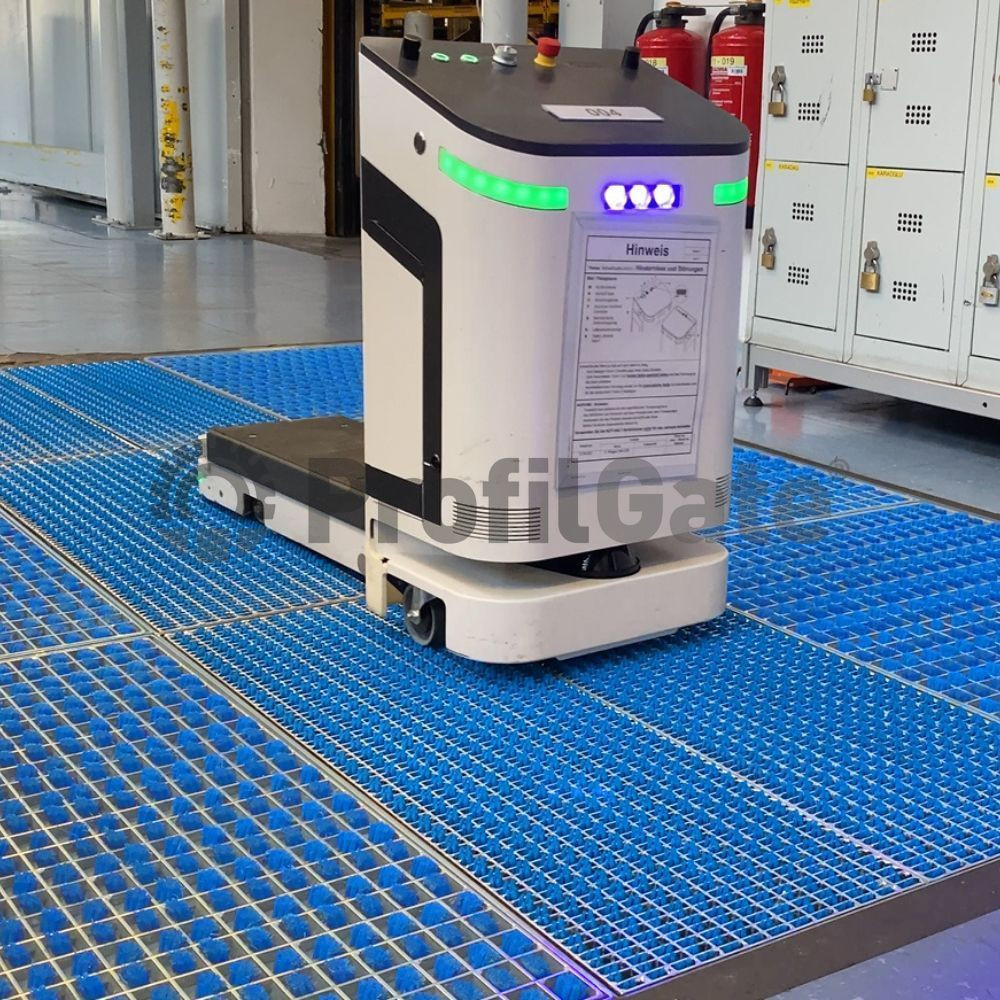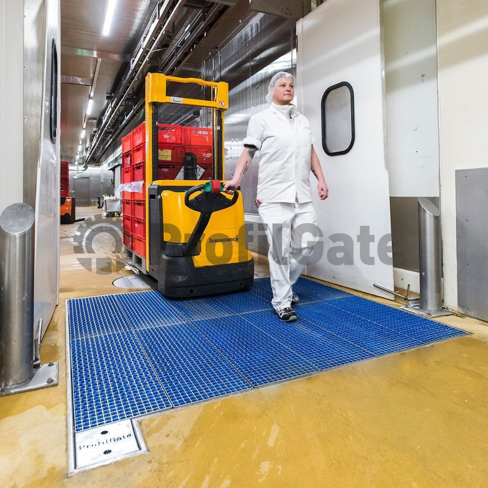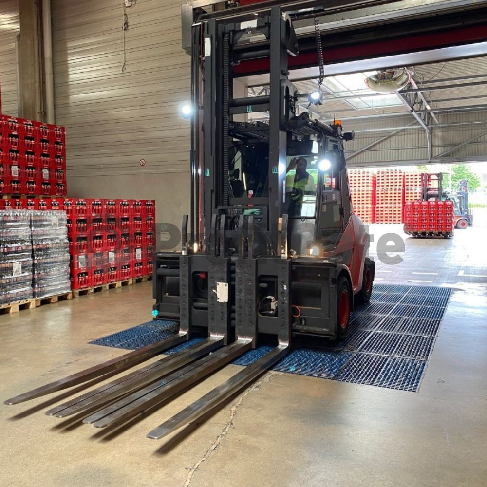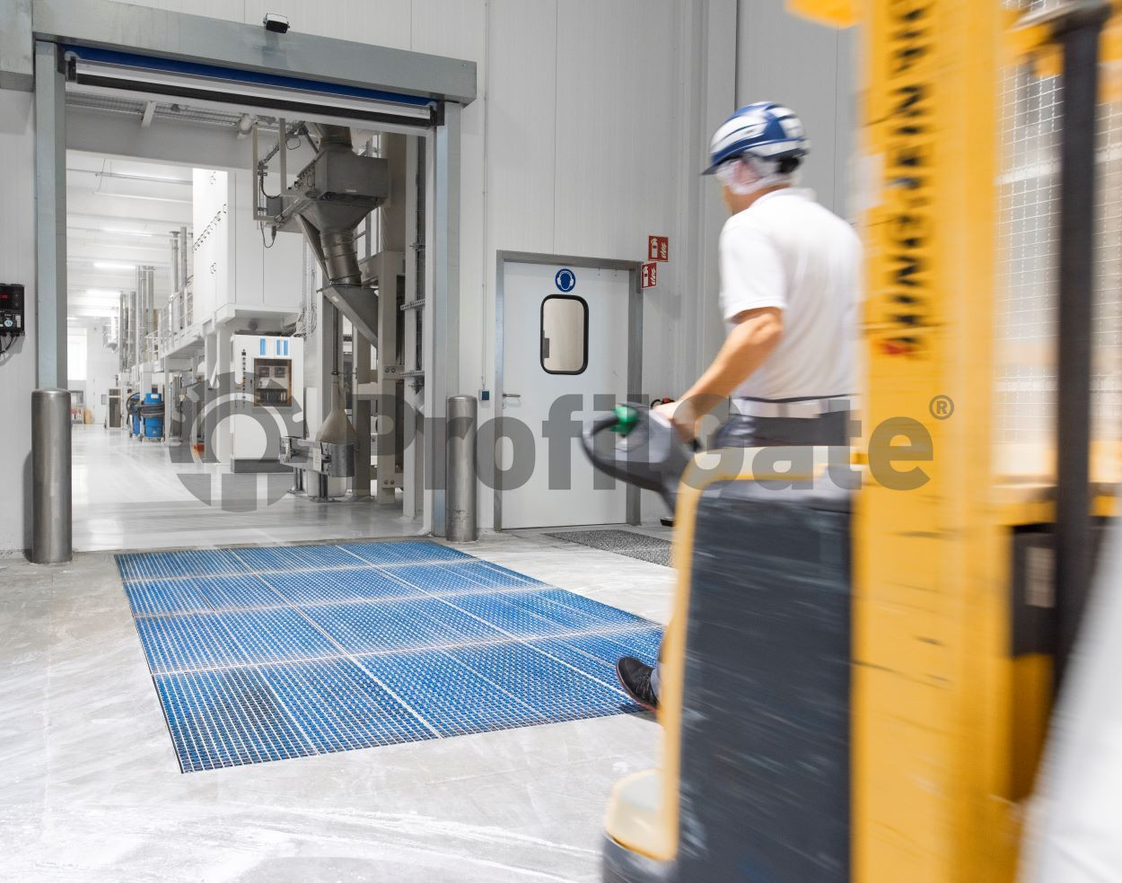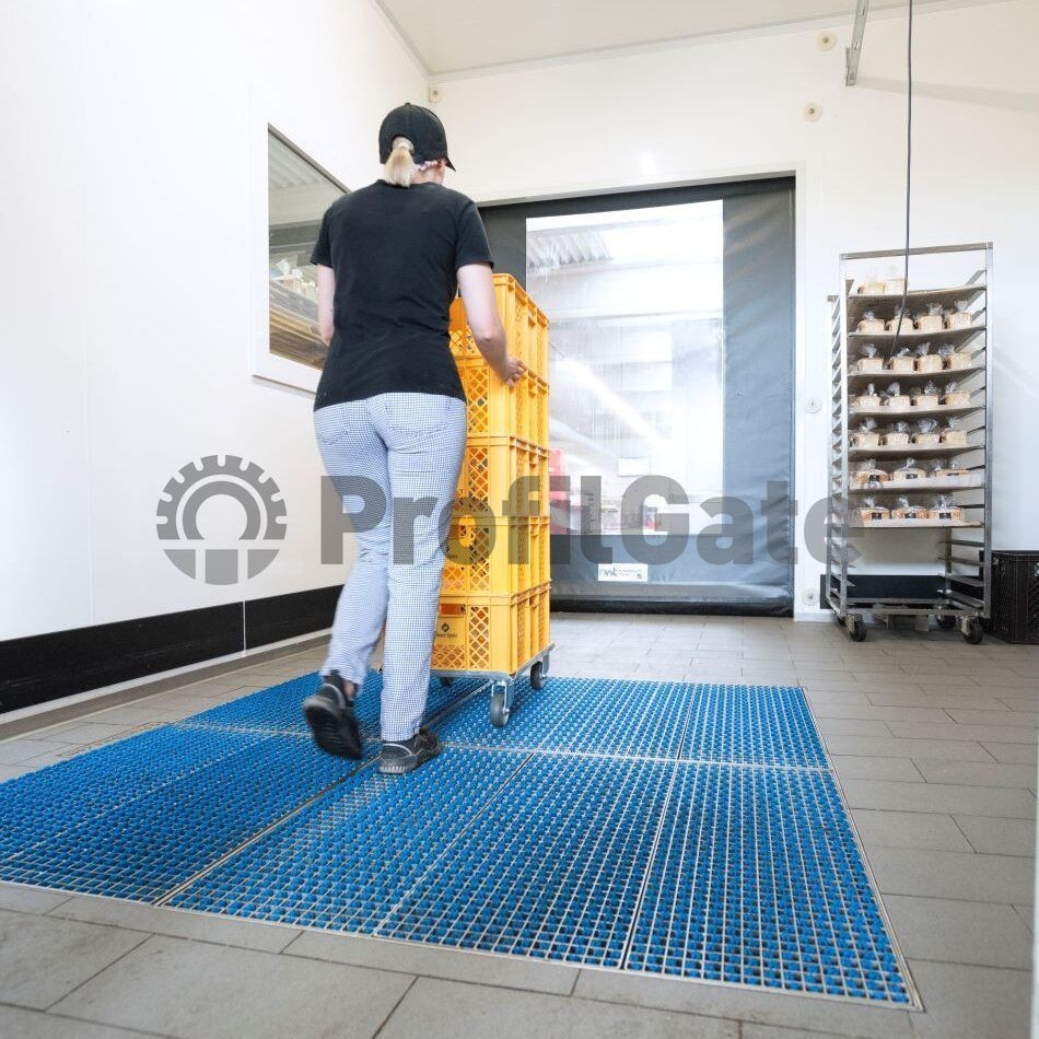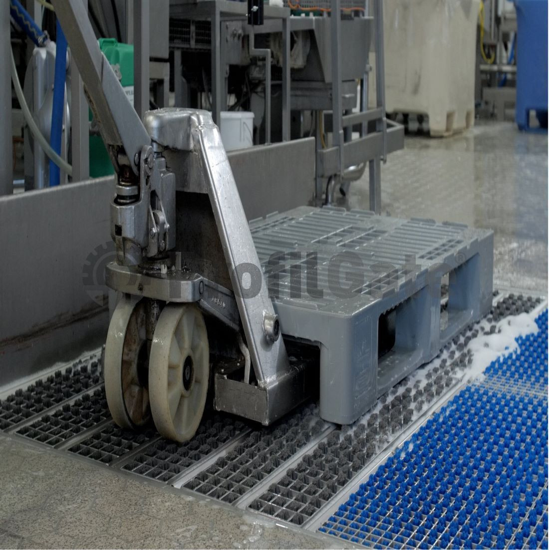 Our cleaning mats come in different strengths. The strongest version can handle hefty loads, up to 40 tonnes. They can also be used for wet cleaning, dry cleaning and for disinfecting the undersides of transparent boxes and pallets.