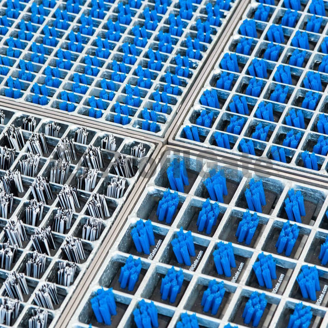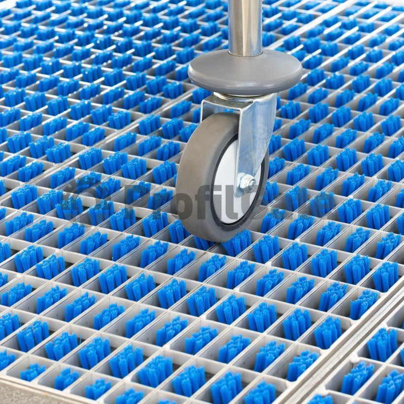 These cleaning systems are manufactured by ProfilGate, the leading innovator in the industrial cleaning solution based in Germany. Their products consist of mats embedded with bruges that are made of either plastic or metal. The vibrations caused by foot traffic or vehicle movement makes the brushes move back and forth, effectively clearing out the dirt. These patented systems are durable and can withstand heavy industrial use.